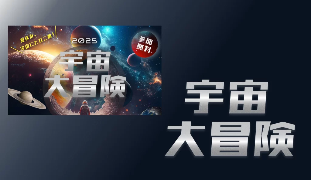 メタリック感のあるフォントを使用し、青少年に宇宙船の機体を連想させつつ、背景には未知の世界を見つめる少年のビジュアルを配置しました。